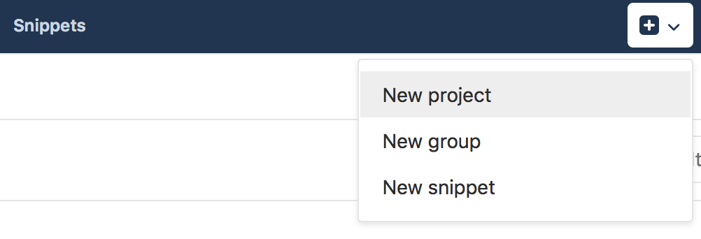 On GitLab, create a new project by clicking on the + icon in the top navigation bar, and selecting New project.