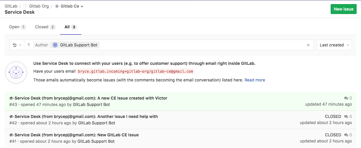 With Service Desk, you can provide efficient email support to your customers, who can now email you bug reports, feature requests, or general feedback that will all end up in your GitLab project as new issues. In turn, your team can respond straight from the project.